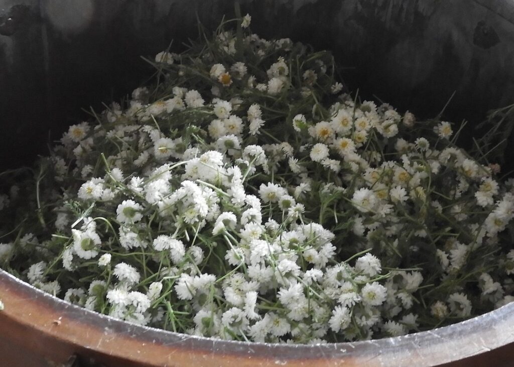 Lezárjuk az üstöket. A gőz lassan halad egyre feljebb, az üstök átmelegednek. Először a növényre jellemző jellegzetes illat tölti be a teret, majd néhány perc múlva megjelennek a hidrolátum első cseppjei. Ezek a legizgalmasabb pillanatok. A lepárlás kíméletes, hosszan, órákon át zajlik, hogy az olajok a lehető legtöbb összetevőt tartalmazzák. Így tudjuk elérni, hogy a legjobb terápiás hatással rendelkezzenek.